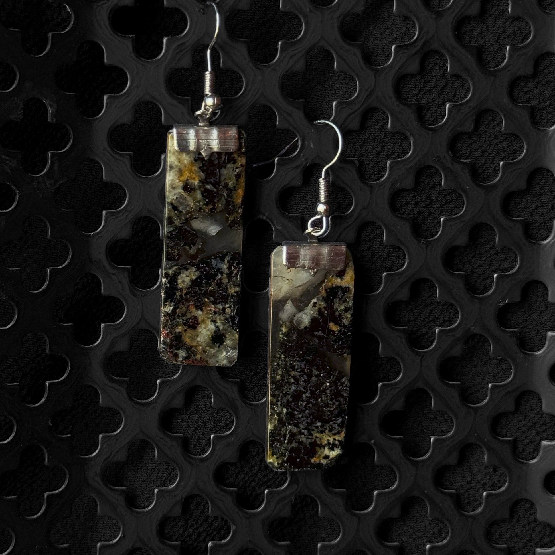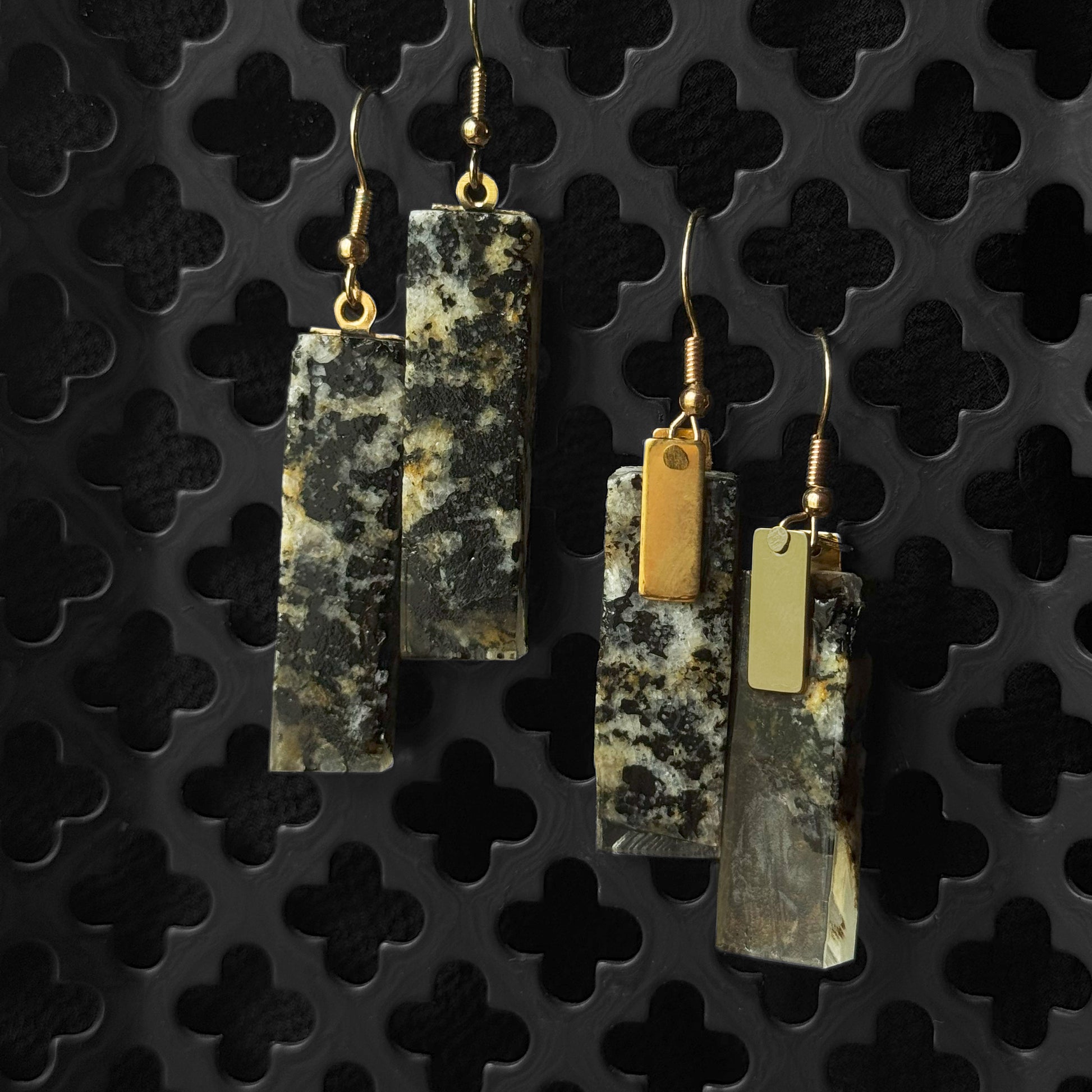 Tourmaline & Feldspar Pegmatite Earrings [MONUMENT CUT] INNER EARTH Stone Resin Jewelry